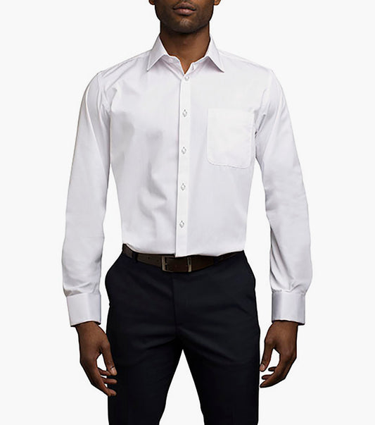 Men's Classic Fit Long Sleeve Spread Collar Dress Shirt - White