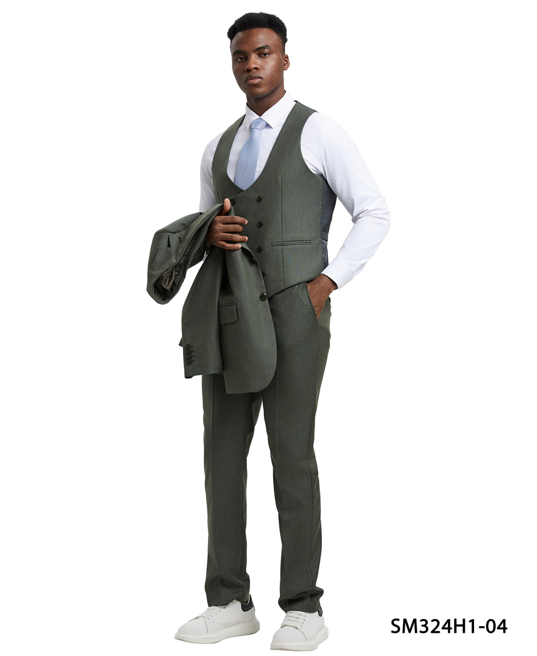 Style: Solid Textured Hybrid Fit Suit (Jacket, Vest, and Pants)
